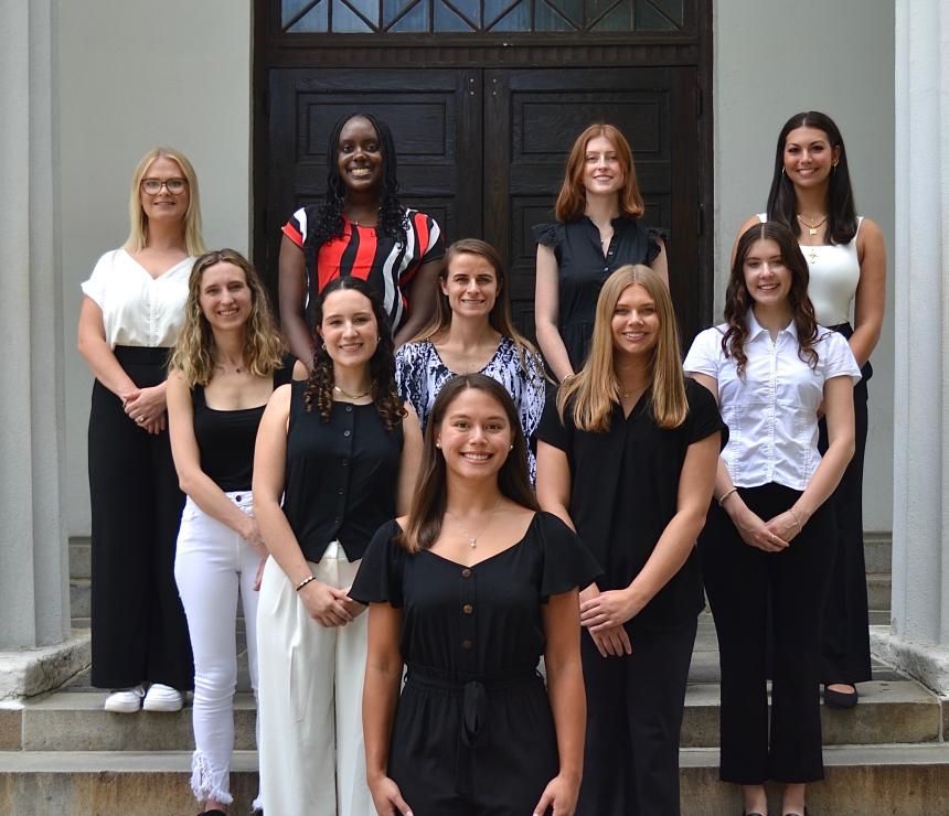 Psi Chi Executive Officers, from left to rightTop row: Addison Montroy, Priscilla Bissah, Annie O'Donnell, Sabrina SciortinoMiddle row: Katherine Lindig, Ashley Langford, Julie Brisson, Anna Vanags, Vivian AustinBottom row: Anna Grace Trammell Psi Chi UGA Undergraduate Officers Anna Grace Trammell President Email: anna.trammell@uga.edu Sabrina Sciortino Vice President Email: sabrina.sciortino@uga.edu Vivian Austin Secretary Email: vivian.austin@uga.edu Anna Vanags Social Event Coordinator Email: anna.vanags@uga.edu Priscilla Bissah Philanthropy Chair Email: pab38563@uga.edu Annie O’Donnell Social Media Specialist Email: anna.odonnell@uga.edu Ashley Langford Professional Development Chair Email: ashley.langford@uga.edu Psi Chi UGA Graduate Officers Julie Brisson Graduate Advisor Email: julie.brisson@uga.edu Addison Montroy Graduate Advisor Email: addison.montroy@uga.edu Katherine Lindig Graduate Advisor Email: katherine.lindig@uga.edu [Click here to return to the Psi Chi Main Page]